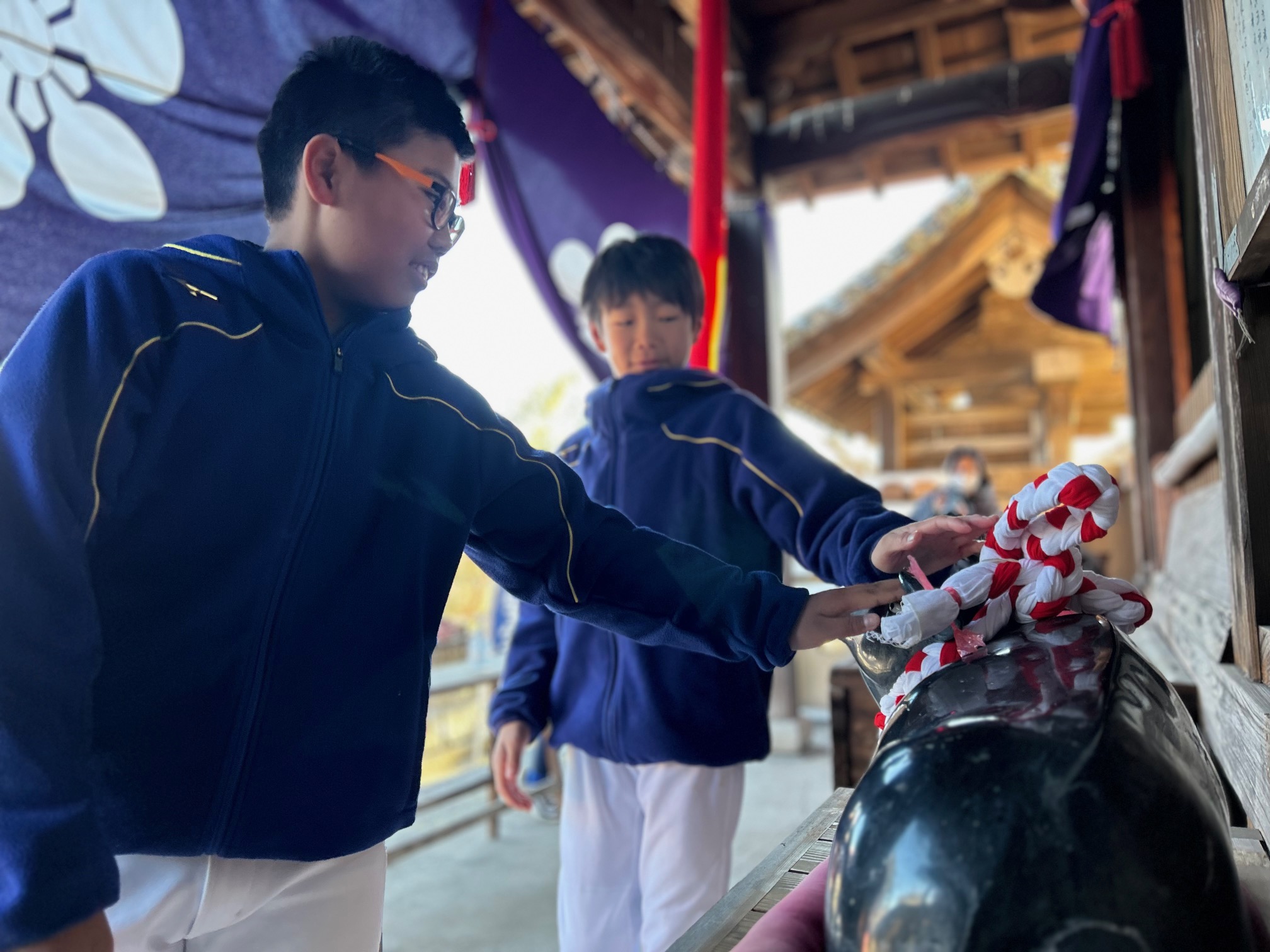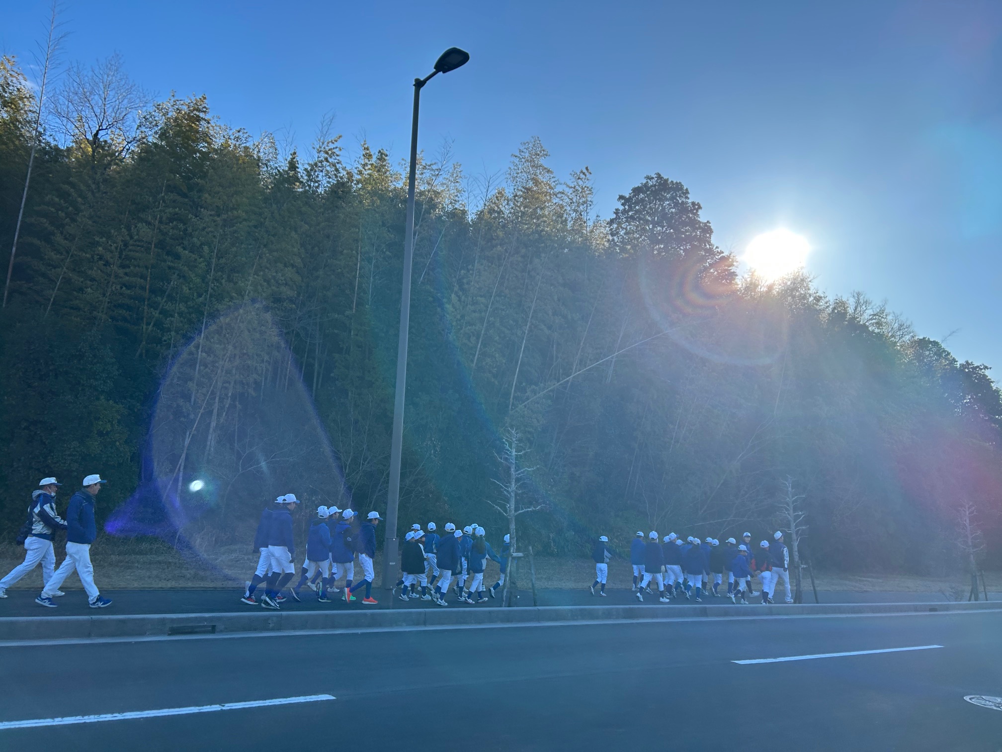 参拝後は、下級生から順に坂道ダッシュでランニング。