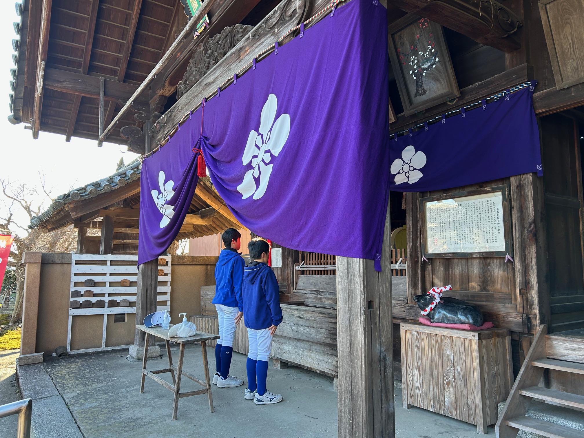 団員、指導者、保護者で日頃のお礼と今年の必勝を祈願しました。