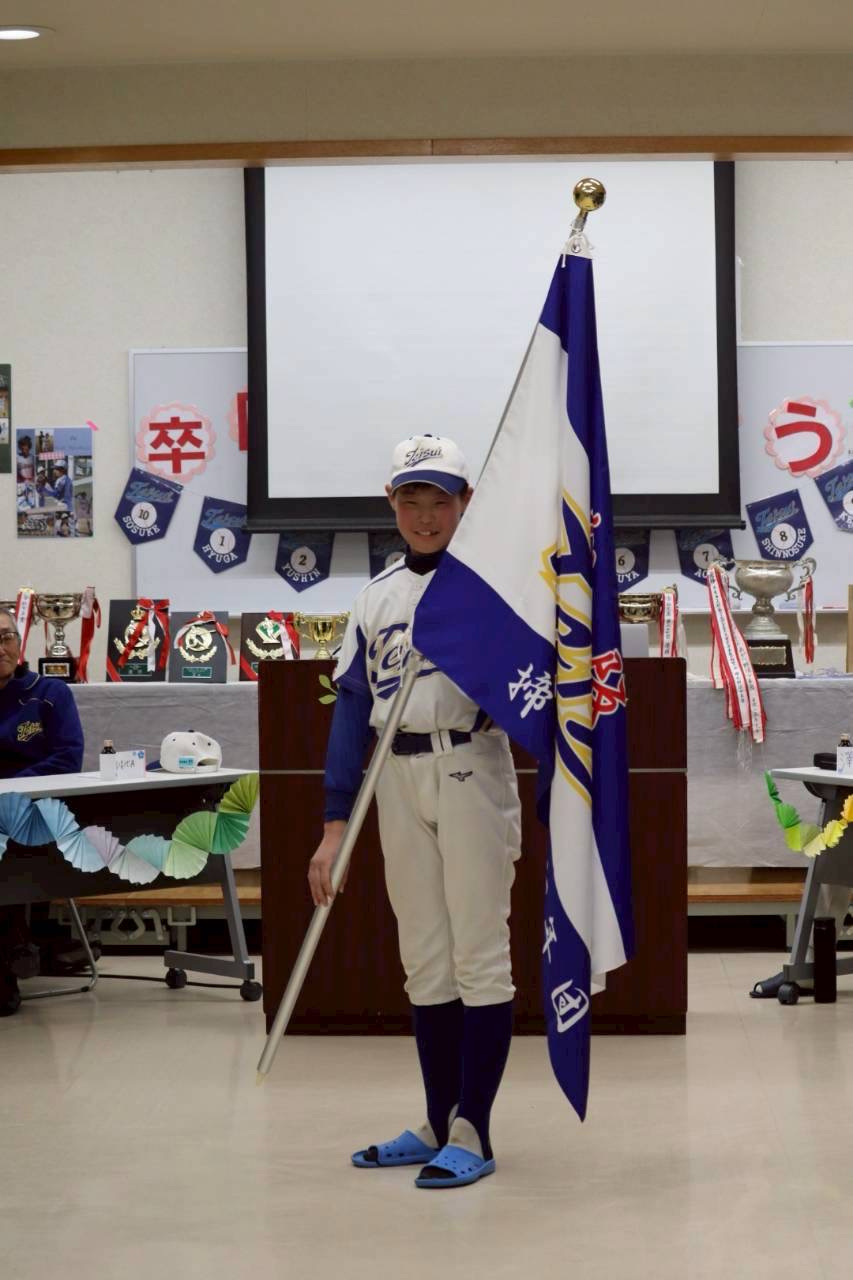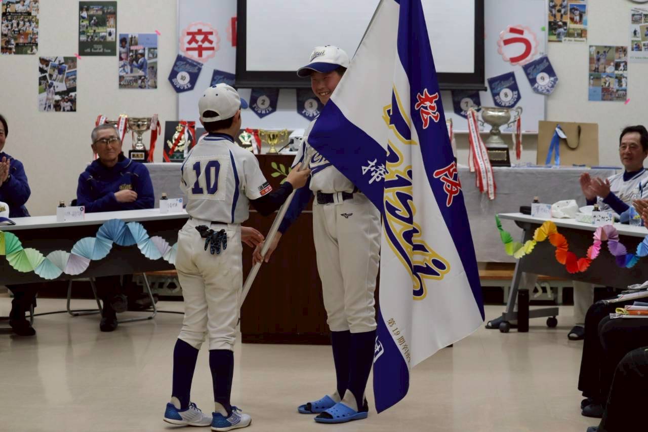 そして、19期生から卒団記念として、新しい「団旗」が新キャプテンに渡されました。この団旗のもと、目標達成に向かって進んでいきたいと思います。